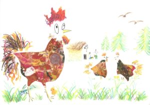 様々な色づかいと様々な模様の中に、ある木と太陽と動物がすてきな作品だと思います!!