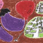 様々な色づかいと様々な模様の中に、ある木と太陽と動物がすてきな作品だと思います!!