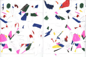 利用者さんが描いて頂いた、作品です!色づかいが」鮮やかで見方によっては鳥に見えたり、植物にも見えたりする作品だと思います!!