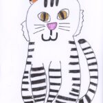利用者さんが描いて頂いた、作品です!!金魚鉢をみている猫の様子がとても可愛い作品ですね!!