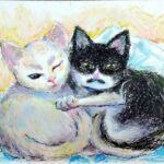 利用者さんが描いて頂いた、作品です!!金魚鉢をみている猫の様子がとても可愛い作品ですね!!