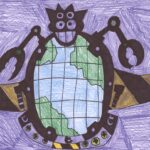 様々な色づかいと様々な模様の中に、ある木と太陽と動物がすてきな作品だと思います!!