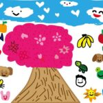 様々な色づかいと様々な模様の中に、ある木と太陽と動物がすてきな作品だと思います!!