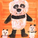 様々な色づかいと様々な模様の中に、ある木と太陽と動物がすてきな作品だと思います!!
