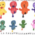 利用者さんが描いて頂いた、作品です!色づかいが」鮮やかで見方によっては鳥に見えたり、植物にも見えたりする作品だと思います!!