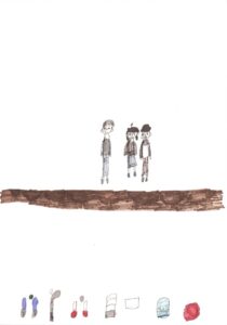 田中さんと陵本さんと支援員さんとパーティとバドミントンとラケットとビート板と跳び箱