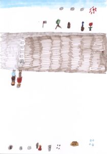 青空と朝顔とチューリップと家と木と信号機と横断歩道と車と藤原さんが私の肩と手助けしてくれてるシーンと焼きそばと餃子と肉まんとプッチンプリンとスプーンと納豆とミートボールとたこ焼きと飴