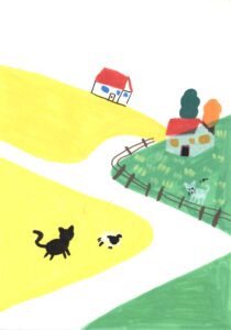 ネコの3兄弟とクリスマスローズ、パンジー、レモン