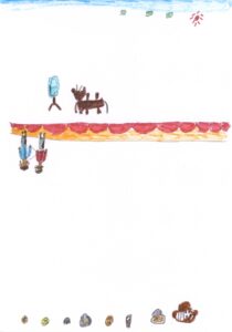 青空と木と鹿とパーティと藤原さんが私の肩と手助けしてくれてるシーンと焼きそばと餃子と肉まんと卵焼きとホットケーキと納豆とマカロニグラタンとしゃぶしゃぶ