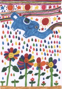 虹色の花と雨