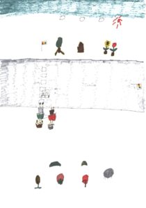 青空と向日葵とチューリップと家と木と信号機と横断歩道と藤原さんが私の肩と手助けとパイナップルと柿と林檎と素麺とえんどう豆と胡食