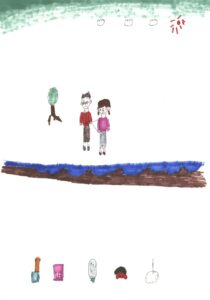 快晴と朝顔とチューリップと家と木と信号機と横断歩道と車と信号機と藤原さんが私の肩と手助けしてくれてるシーンとアイスクリームとトンカツサンドとフランクエッグとカステラ