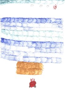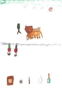 晴天と朝顔とチューリップと家と木と信号機と横断歩道と車と信号機と藤原さんが私の肩と手助けしてくれてるシーンとけん玉とサッカーとゴルフとラケットとバドミントンとカレー