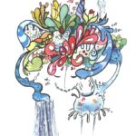 青いかみのけときいろいお花がどーしてもかきたかった作品です・・・。 「瞳の中のボク」の゛ボク"というのは、きんいろでかいてあるお花を、この作品を見て下さる方にみたててタイトルをつけました。