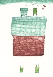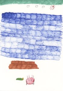青空と向日葵とチューリップと家と信号機と横断歩道と車と信号機と藤原さんが私の肩と手助けをしてくれるシーンと林檎とバニラヨーグルトとメンカツのサンドとピザ