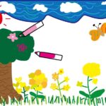 青空と向日葵とチューリップと家と木信号機と横断歩道と車と信号機と藤原さんが私の肩と手助けしてくれるシーンと筆箱と箱