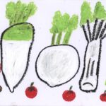 青空と向日葵とチューリップと家と木と信号機と横断歩道と藤原さんが私の肩と手助けとパイナップルと柿と林檎と素麺とえんどう豆と胡食