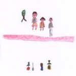 五歳の長男が、愛猫に「おはよう」と言ってよりそっているところを描きました。
