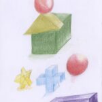 青空と木とゴリラと地面と藤原さんが私の肩と手助けしてくれるシーンとサッカーとバドミントンの羽とラケットのボールとパターゴルフと鯛焼き